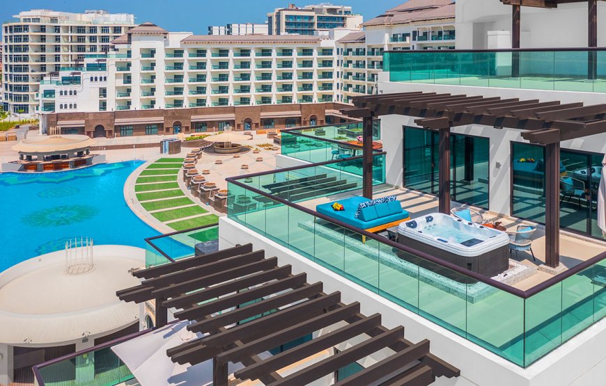 Taj Exotica Resort & Spa, The Palm, Dubai is one of the best hotel option in Dubai that has a restaurant, free private parking, an outdoor pool, and a fitness center. This property’s amenities include a tennis court, a bar, and a private beach area. The hotel provides guests with a 24-hour front desk, room service, and currency exchange.